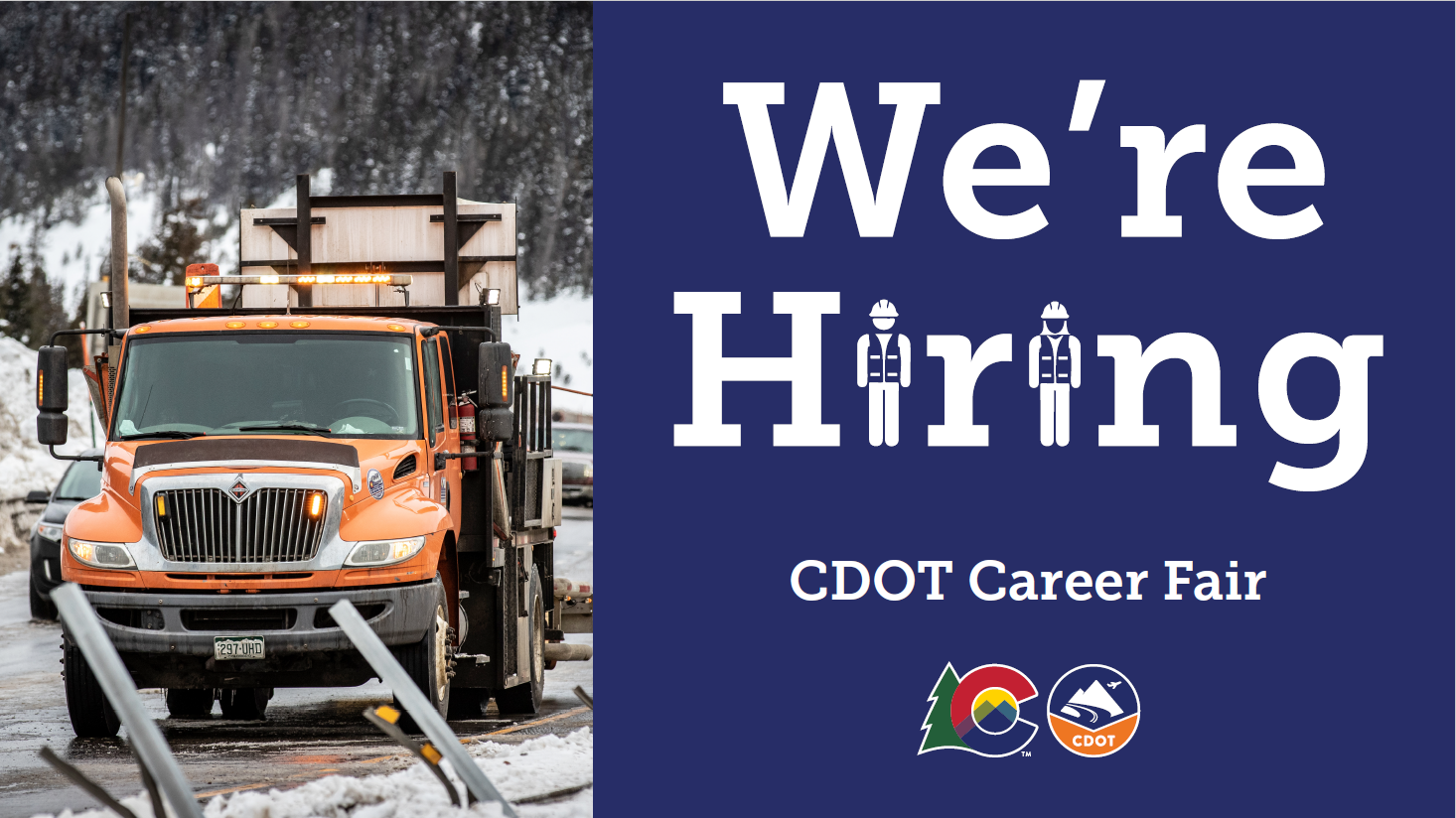 If you cannot attend an in-person career fair, but are interested in employment with CDOT maintenance, you may also apply online to individual positions at https://www.governmentjobs.com/careers/colorado?department%5B0%5D=Department%20of%20Transportation