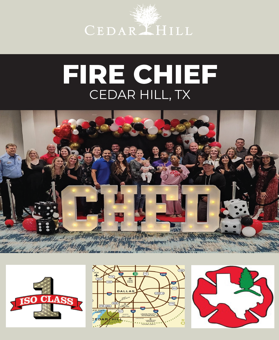 The City of Cedar Hill is seeking an innovative, community-oriented servant leader ready to join its municipal family as the next Fire Chief!