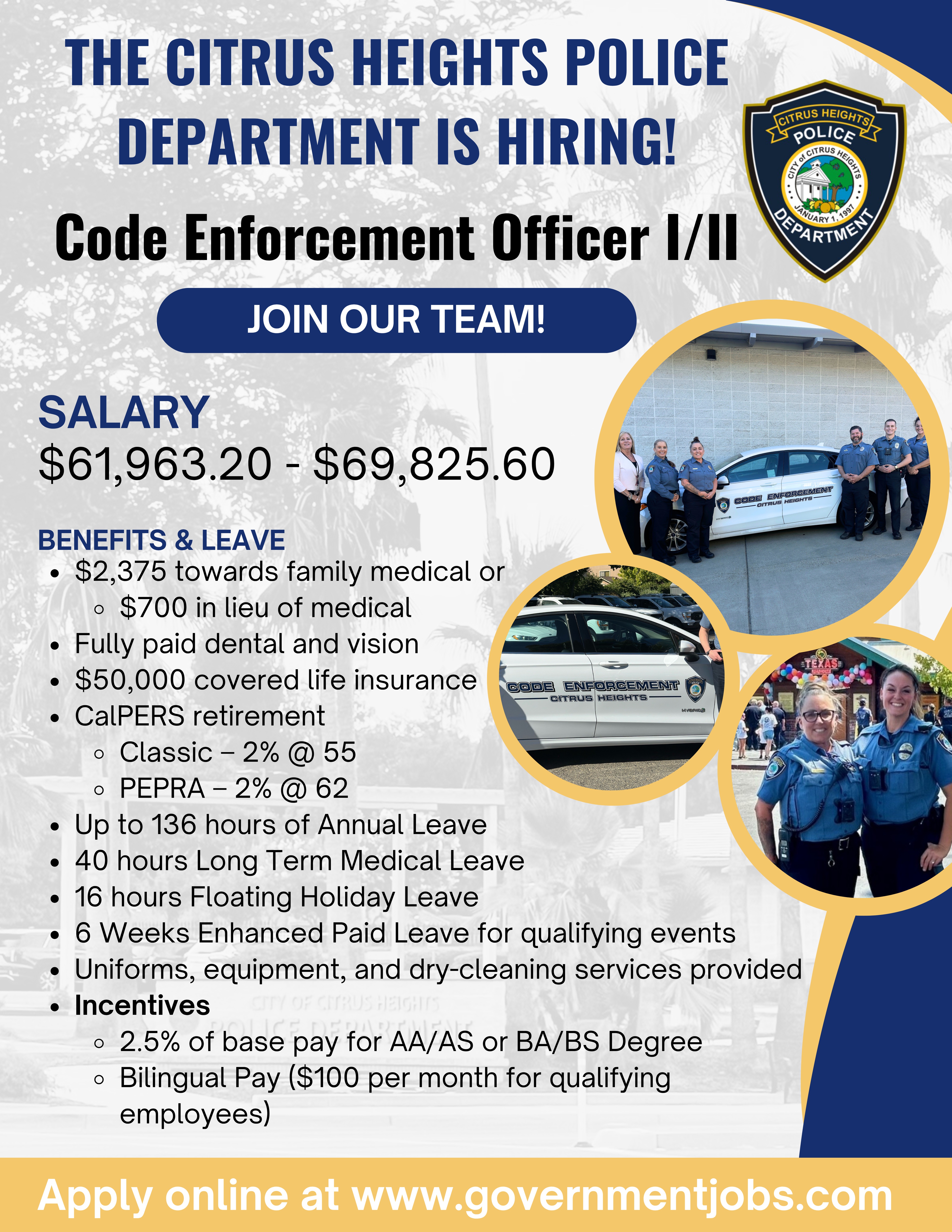 Code Enforcement Officer I/II at City of Citrus Heights, CA