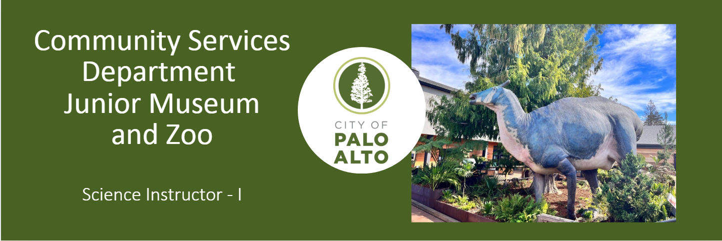 The City of Palo Alto’s Community Services Department is excited to announce that the Junior Museum & Zoo (JMZ) is currently recruiting for a part-time Science Instructor I.