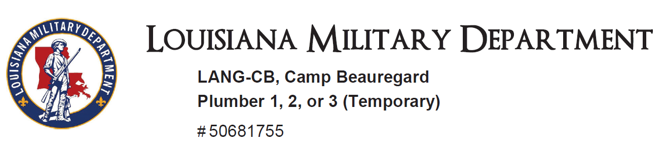 Plumber 1, 2, or 3 (Temporary) en State of Louisiana, LA