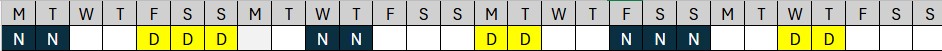 Shifts: 3s and 2s Panama shift pattern Day/Night rotating