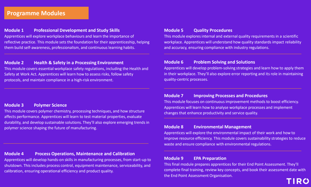You’ll be trained by an expert tutor from Tiro as well as an experienced mentor at Aylesbury Granulation who together, will make sure you develop the knowledge, skills, and work habits you’ll need to succeed in your career.
