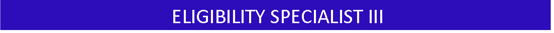 Click here to view the minimum qualification for Eligibility Specialist III, as well as the physical, environmental, and working conditions.