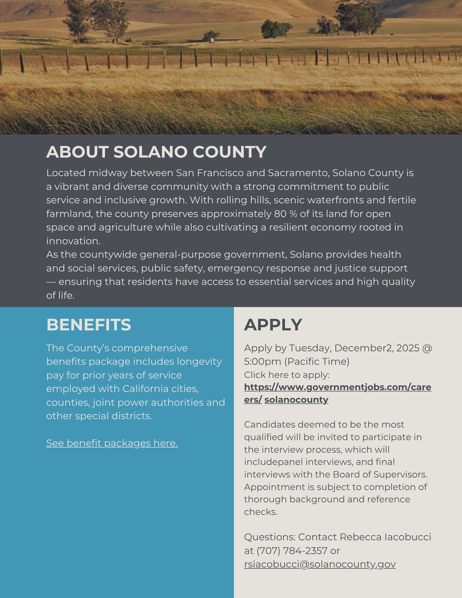RETIREES - Solano County invites all to apply for positions; however pursuant to Government Code Section 21221(h) and 21224, hiring restrictions may apply to California Public Sector Pension Plan Retirees.
