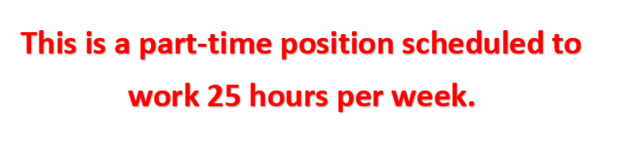 The position will work 25 hours per week. The work schedule is Monday - Friday 8:00 a.m. to 1:00 p.m.