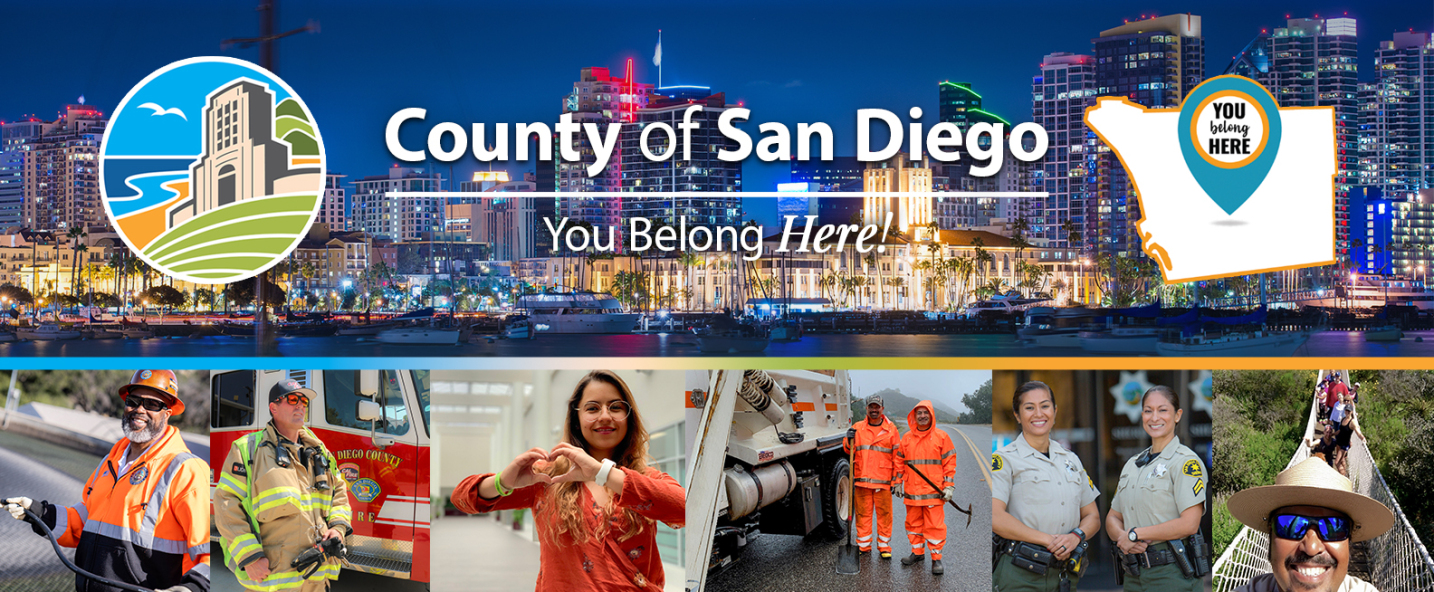 The County of San Diego and its employees embrace the vision of: a just, sustainable, and resilient future for all. Our values include: integrity, equity, access, belonging, excellence, and sustainability. Each of which are infused throughout our operations. While also embracing a mission of strengthening our communities with innovative, inclusive, and data driven services through a skilled and supported workforce. Click here for more information on our Strategic Plan (sandiegocounty.gov)